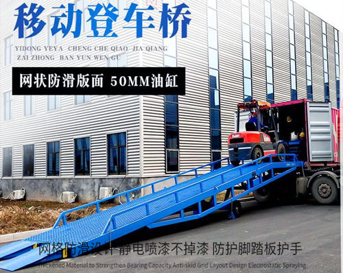 煙臺登車橋-煙臺集裝箱卸貨登車橋-物流登車橋用于無裝卸設(shè)備的貨臺及流動裝卸場所,是與叉車配合使用的貨物輔助設(shè)備。借助該設(shè)備,叉車能直接駛?cè)肫囓噹麅?nèi)部進(jìn)行批量裝卸作業(yè)。只需單人操作,不需動力電源,即可實物的安全快速裝卸。既可使您減輕勞動強(qiáng)度,又能成倍提高裝卸作業(yè)效率,加快物料流通速度,獲取更大經(jīng)濟(jì)效益。